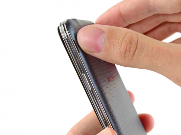 Push a plastic opening tool or one of your fingernails into the opening to the left of the rear-facing camera.