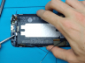 Use a hair dryer or a heat gun to loosen up the adhesive securing the battery to the display assembly.