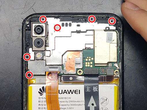 - Remove the top shield. - Disconnect and remove the front camera. - Disconnect the antenna cable carefully. - Disconnect and remove the dual main camera. - Pry and remove the main board from the phone.