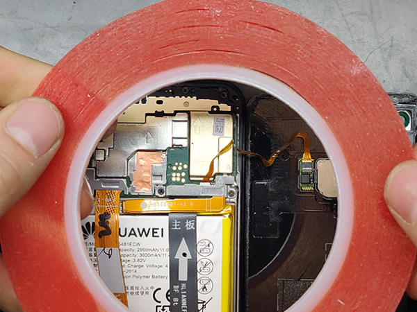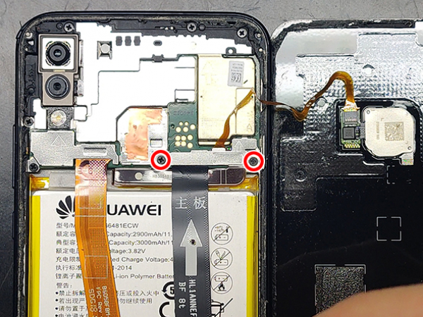 - Power off your Huawei before beginning disassembly. - Insert the thin metal opening tool between the battery cover and frame. - Flip the cover carefully to the right side of the phone. - The fingerprint ID sensor cable is attached to the back cover.