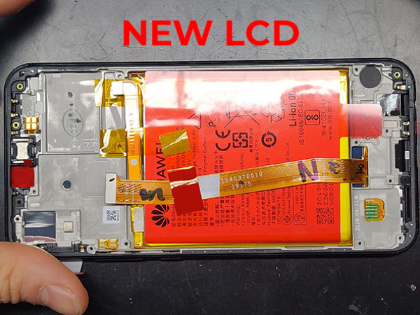 - We are using a complete LCD assembly. - That includes the LCD, the frame and the battery. - Remove all protective stickers from the sapre LCD assembly. - Insert the SUB board into the new assembly. - Tuck in the antenna into the cavity on the right side of the frame. - Insert the loudspeaker assembly and secure it with the 7 screws.