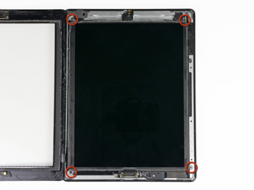 Four 2 mm Phillips #00 screws securing the LCD to the aluminium frame need to be removed.