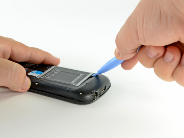 Lift the battery from the end closest to the headphone jack using the edge of a plastic opening tool.