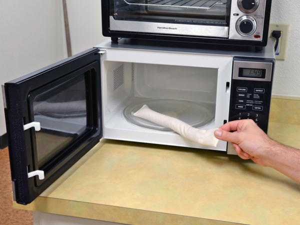 If the iOpener has not been heated for some time, or this is the first time you are using it, it is advisable to microwave the bag wrapped in a damp paper towel. This way, contents of the bag will not burn in case of accidental over-microwaving.