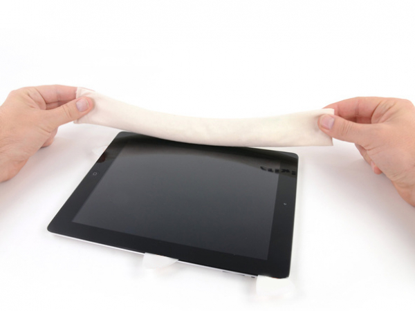 Proceed with releasing the adhesive all the way along the bottom edge of the iPad.