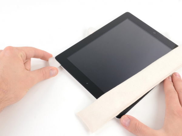 Reheat the iOpener, and place it again on the bottom edge of the iPad. You should do this while you try to release the adhesive on the right side of the iPad.