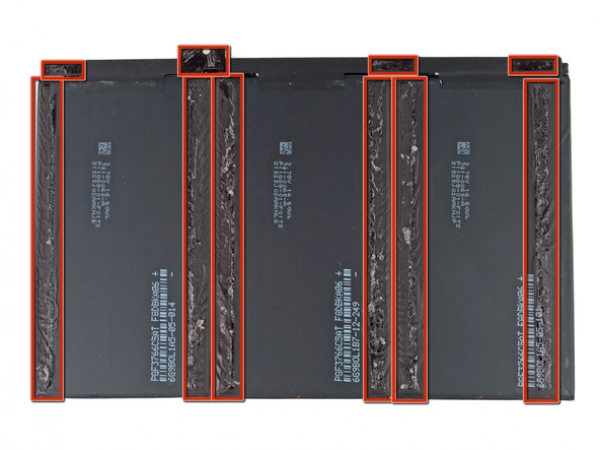 The battery is glued to the aluminum frame with very strong adhesive.