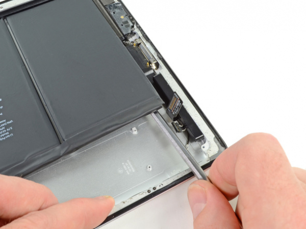 Push the flat end of a metal spudger under the battery. Do this near the bottom of the iPad.