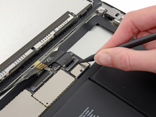 The bottom of the digitizer cable is located only about 2.5 cm from the bottom of the iPad. Be careful not to damage the cable.
