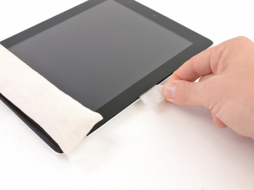Put the iOpener flat on the right edge of your iPad and smooth it out. This way you'll be sure that there's good contact between the iPad and the iOpener.