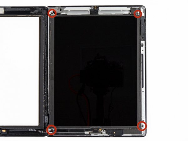 A 2 mm Phillips screw is securing the LCD to the aluminum frame. Remove it.