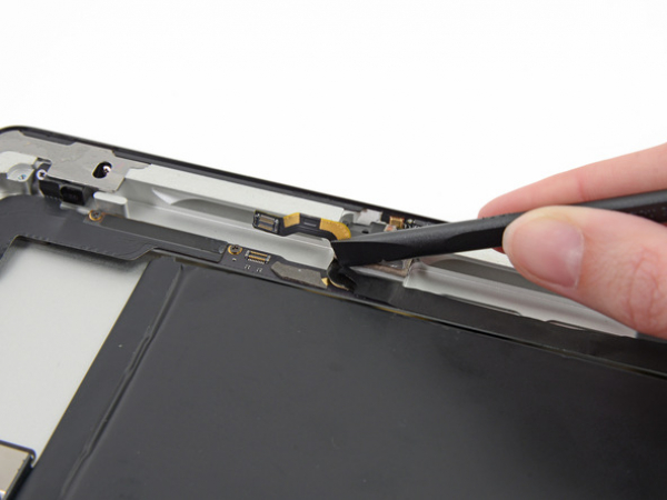 Peel back the digitizer ribbon cable. Separate the cable from the adhesive securing it to the rear aluminum case with the flat end of a spudger.