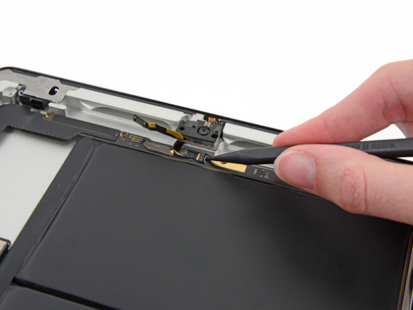 Pull the assembly from the iPad while holding the headphone jack assembly with your other hand. Make sure that the cables don't get caught.