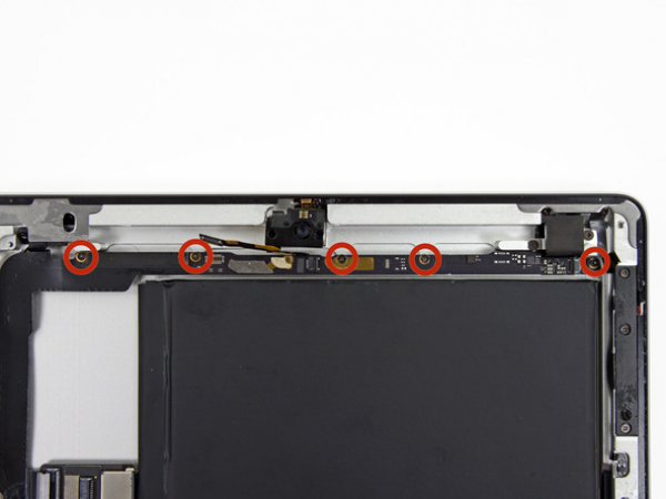 If there's a piece of electrical tape covering the Wi-Fi antenna, speaker cable and the home button ribbon cable, remove it.