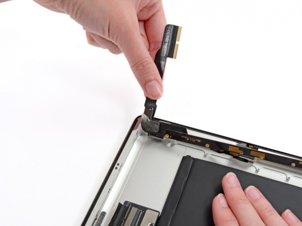 Take the digitizer ribbon cable out of its niche in the aluminum frame. Do this with your fingers.