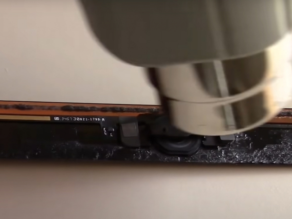 - Start the process by heating up the area. - Take the metal pry tool and wedge it underneath to free the home button from the adhesive. - Carefully peel the cable off from the original screen. - Remove the plastic home button by pushing it up from the opposite side.