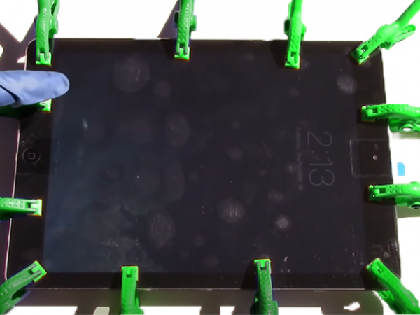 - If the display glass is damaged, tape over the glass to prevent additional breakage. - Lay overlapping strips of clear self-adhesive tape over the display.