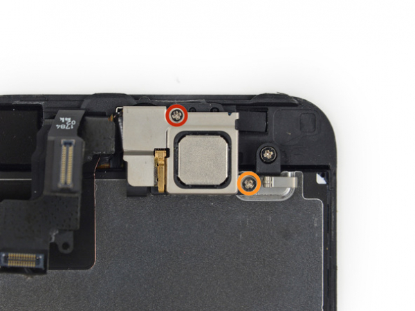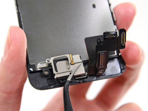 There are still some ribbon cables securing the front panel assembly at the top of the iPhone, so don't remove the assembly completely immediately.