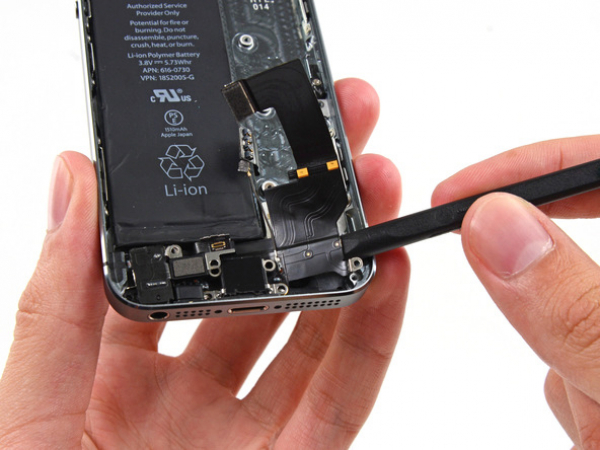 Lift the Lightning connector cable from its socket on the logic board with a spudger.