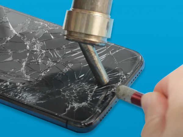 - If the display glass is shattered, tape over the glass to prevent additional breakage. - Cover the display with overlapping strips of clear self-adhesive tape.