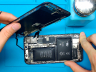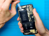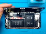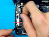 It is still early to disengage the display completely; several ribbon cables still attach it to the phone's logic board.