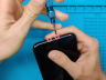 Prying along the top edge of the phone may cause damage of plastic clips which secure the display.