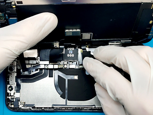 - Do not disengage the display yet; several flat cables connect the display to the phone's logic board.