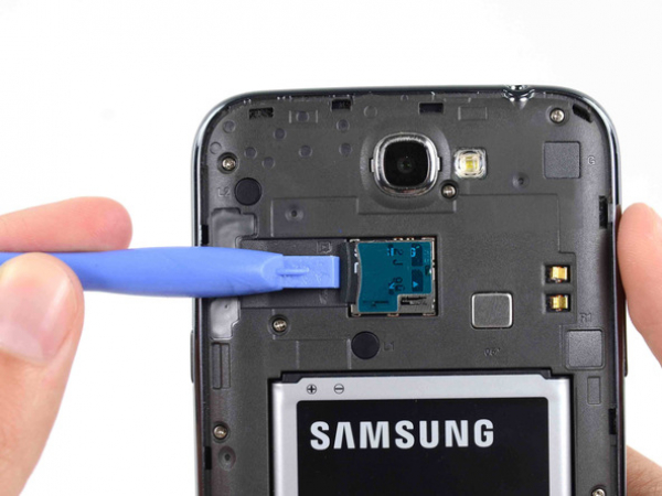 Press the microSD card (if you have one) deeper into its slot with the flat end of a spudger (or your fingernail) until you hear a click.