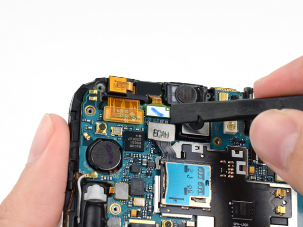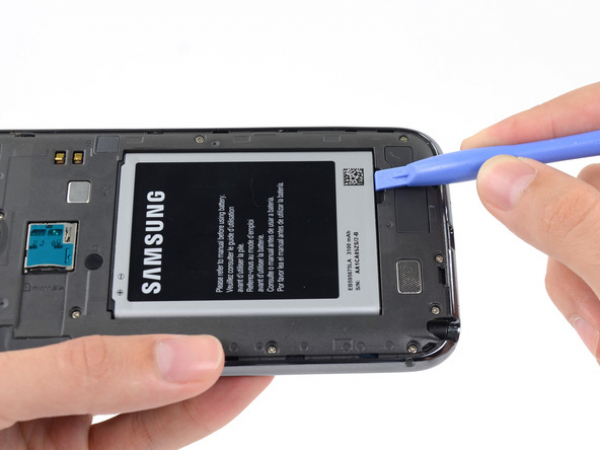 Use a plastic opening tool to lift the battery from the case. You need to insert the tool into the indentation above the battery compartment to do this.