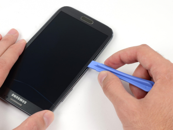 • Wedge in the plastic opening tool between the midframe and the front panel assembly (the side of the phone).