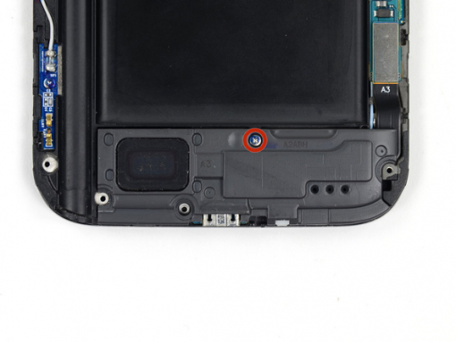 Remove the Phillips screw (3 mm) securing the speaker enclosure.