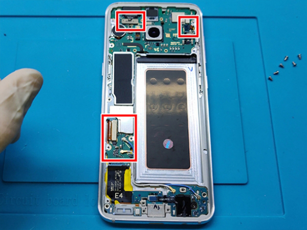 -Connect the motherboard and the sensor array connector (top right). -Connect the motherboard's front camera connector (top left). -Connect the motherboard and the digitizer (bottom left). The antennas should then be connected to the motherboard.