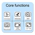 - Functions: Photo taking, video recording, microscopy