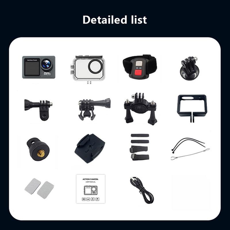 F300AAR-G 5K Action Camera with Waterproof Case, Remote Control and Accessories