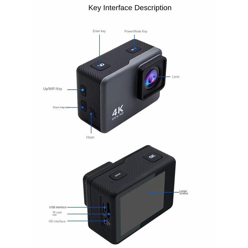 F300AB-R 2 Inch 4K WiFi Action Camera with Touch Screen and 30 m Underwater Housing