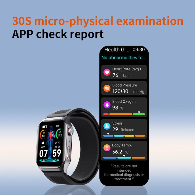 - Medical-Grade Health Tools - pneumatic blood pressure system, ECG, SpO₂ monitoring, cortisol insights and hydration analysis