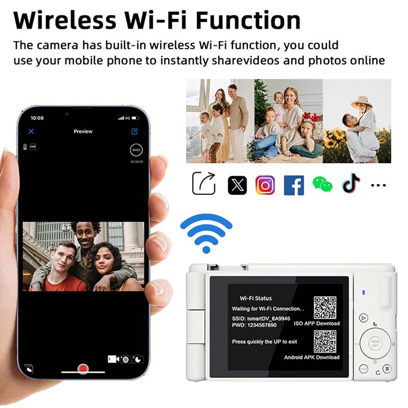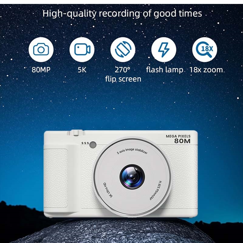 • FC003W Digital Camera with 2.8" IPS Flip Screen - 5K Video Recording, 80MP Photos and WiFi Connectivity