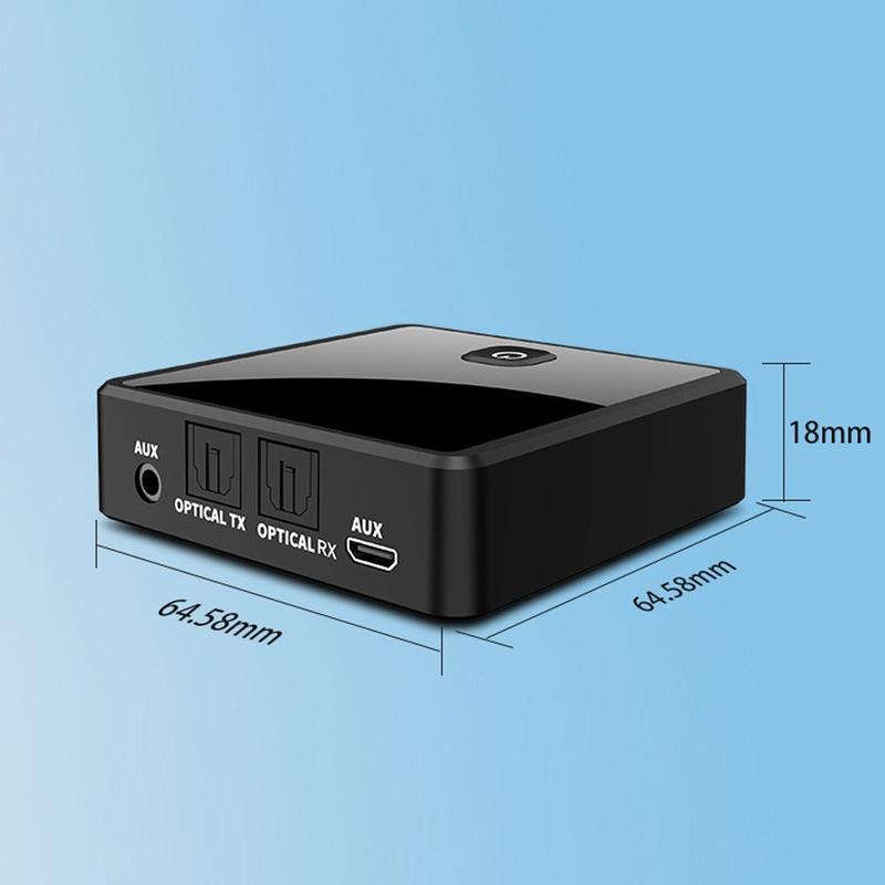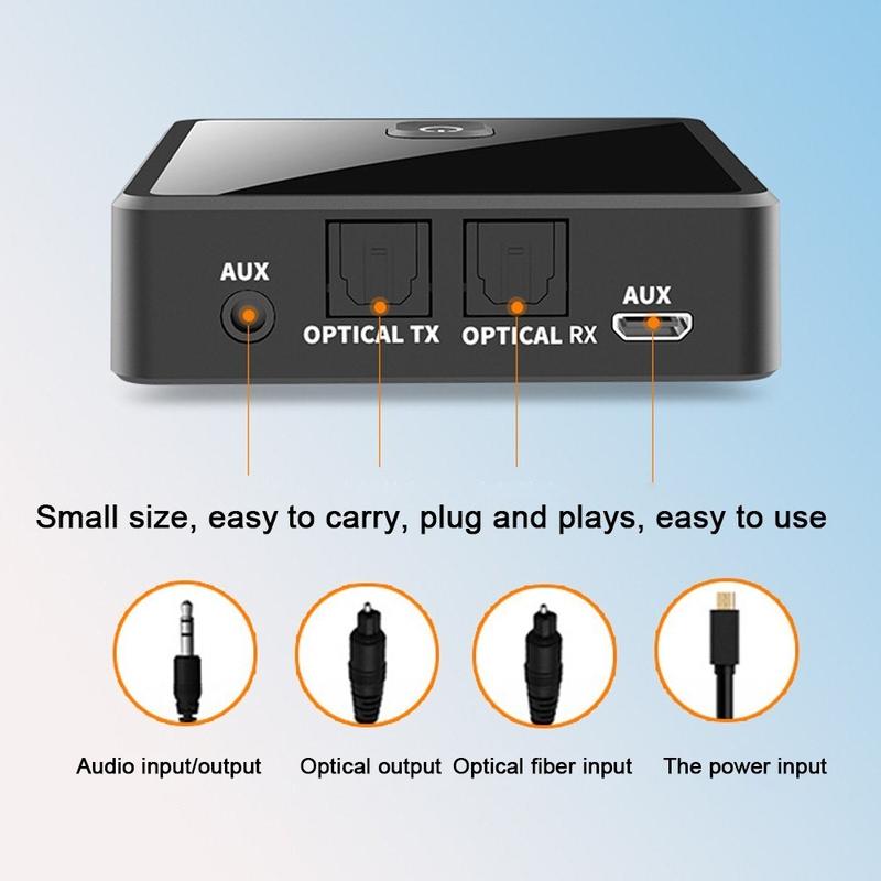 Equipped with optical fiber, 3.5 mm AUX, and RCA (red/white) interfaces, the adapter supports a wide range of audio systems. This flexibility makes it easy to connect TVs, computers, power amplifiers, speakers and sound systems while maintaining clear, low-latency audio performance.