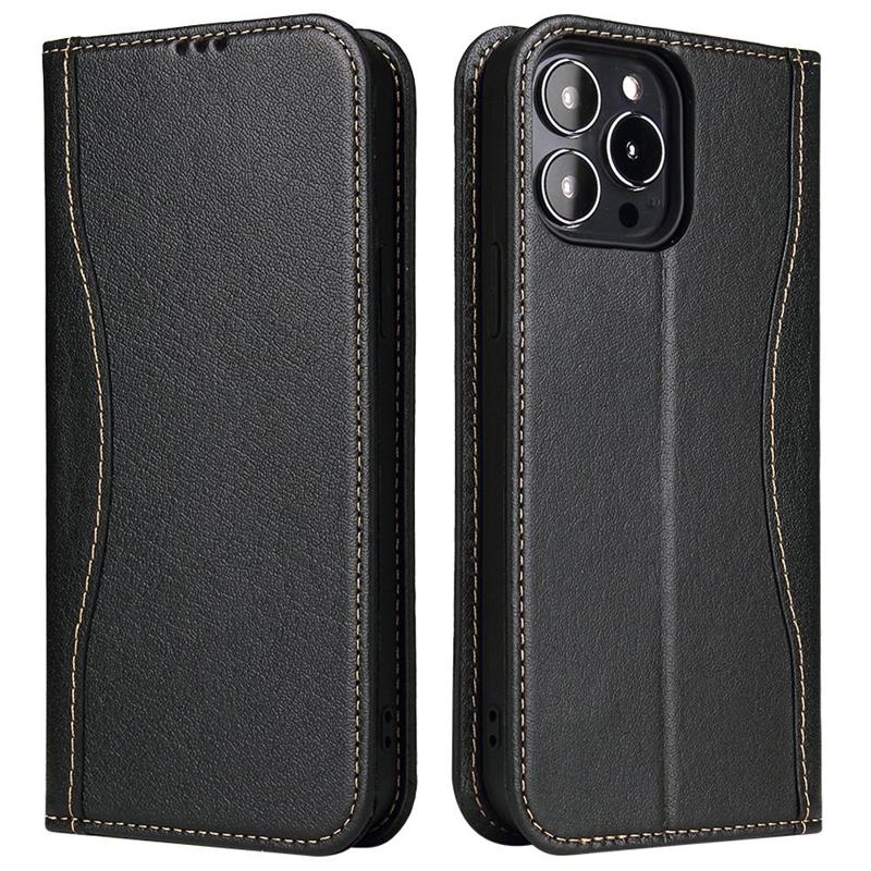 Fierre Shann iPhone 14 Pro Wallet Leather Case - Black