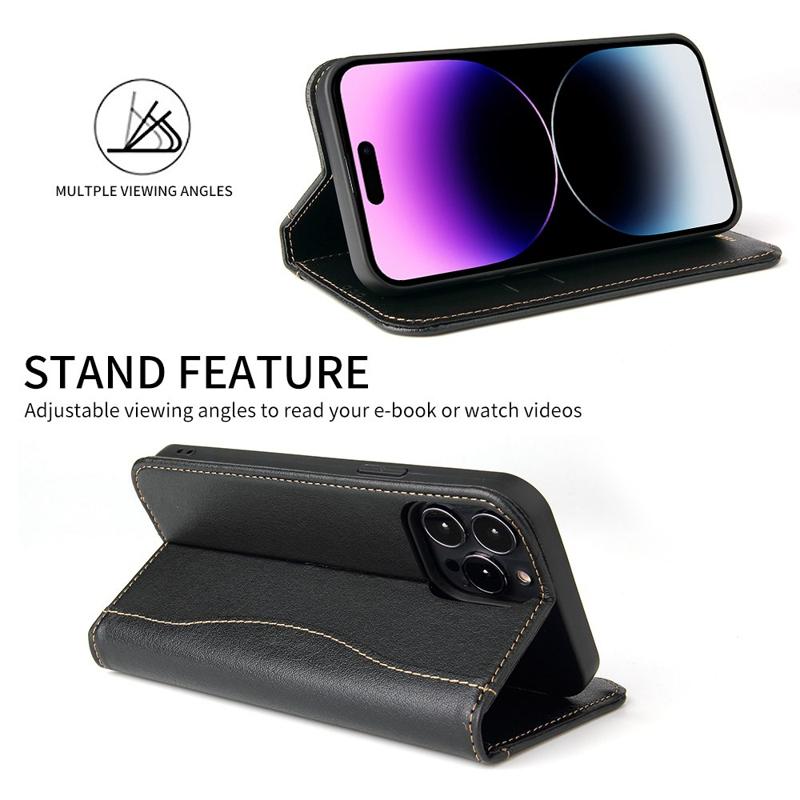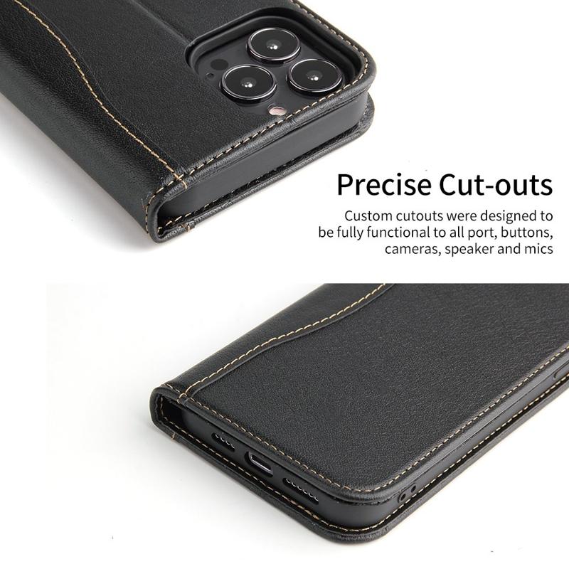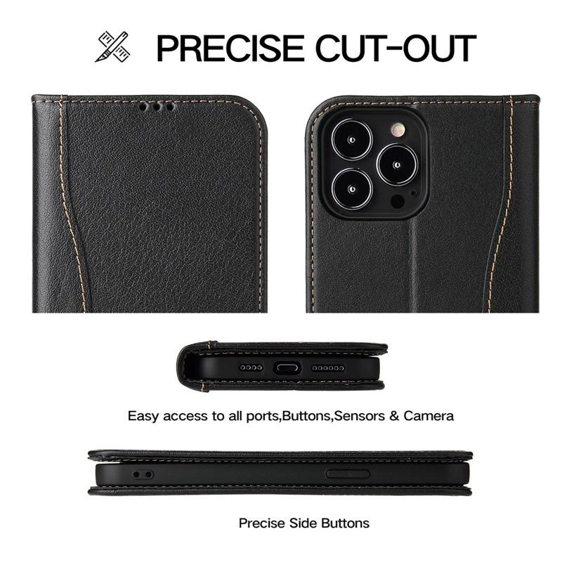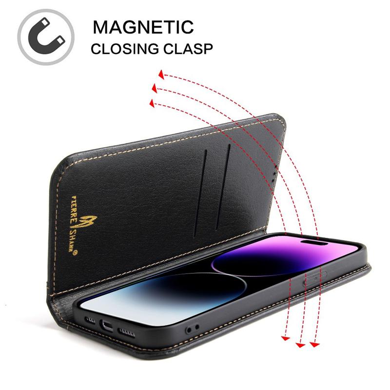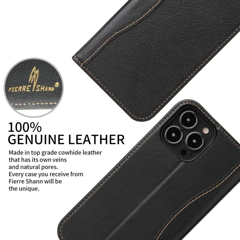 • FIERRE SHANN Phone Case for iPhone 14 Pro, Top Layer Cowhide Leather Wallet Stand Shockproof Cell Phone Cover This high quality defense case is built to provide excellent protection against damages of everyday use, while dressing up your phone to make it stand out at the same time. Crafted from the top layer cowhide leather, it features smooth texture to enable an elegant look and comfortable touch sensation. Built-in card slots and side pockets, it can store your essential cards and money with your phone. - Made from high-quality top layer cowhide leather and TPU, offers a good hand feeling - Card slots and hidden pocket for holding your belongings - Supporting stand for hands-free experience, freely adjust the viewing angle - Auto-absorbed magnetic closing system, firmly keep the phone case closed - Provides protection against daily wear and tear, scratches, marks and scrapes - Quick and easy installation and removal
