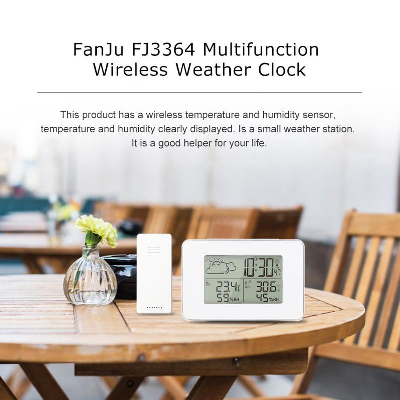 FJ3364 Digital Weather Station with Alarm Clock, Wireless Sensor, Hygrometer & Thermometer with LCD Display and Calendar