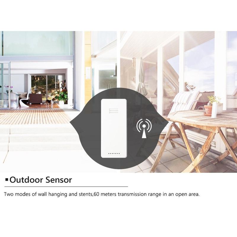 - Wireless outdoor sensor with 60 m transmission range (open area)