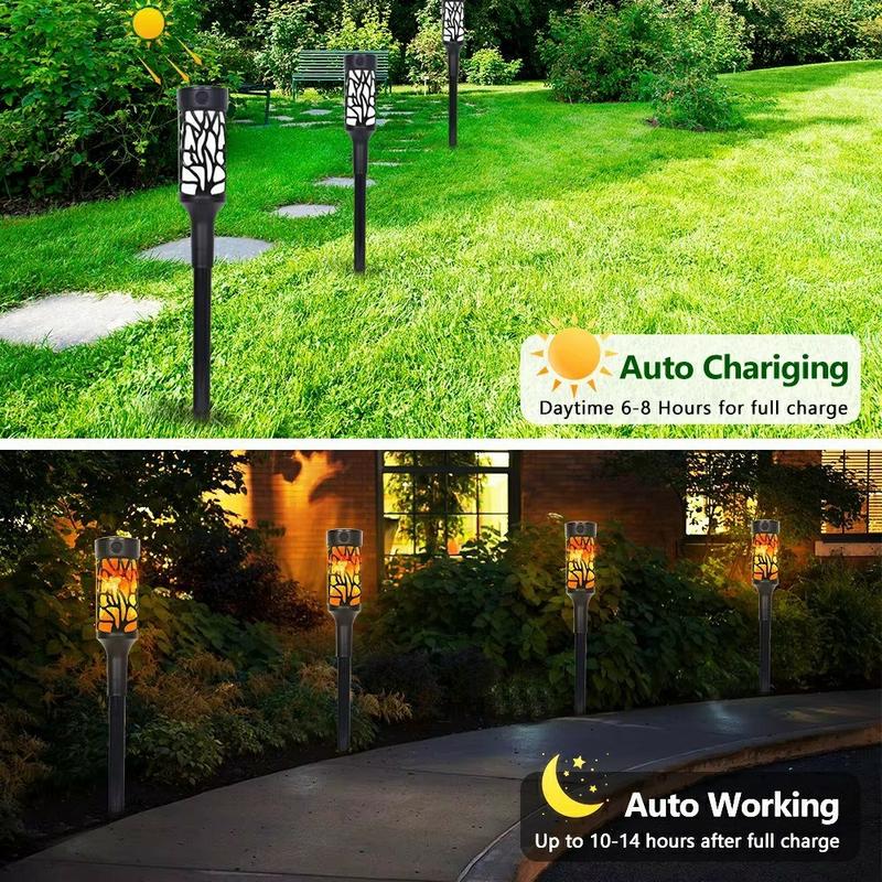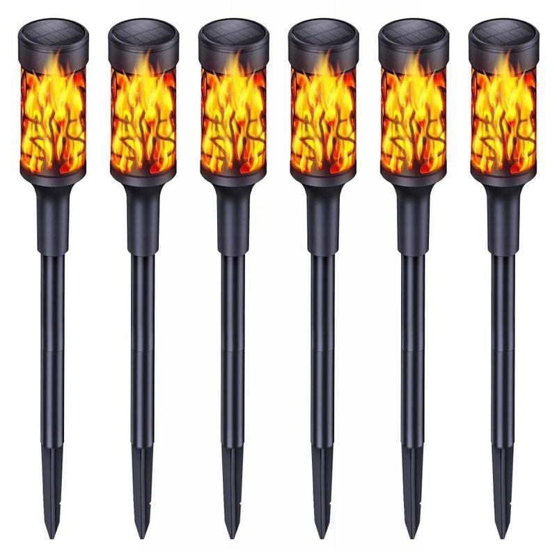 Flame Effect Pathway Solar Lights - 6-Pack, 63 cm Flickering Torch Stakes with Motion Sensor, IP65 Waterproof Garden & Lawn Lamps