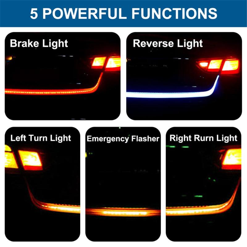 Upgrade rear visibility and add a modern look to your vehicle with this flexible 120cm LED tailgate light strip. Designed for universal use on cars and SUVs, it mounts along the tailgate or trunk edge and works as running light, brake light, turn signals, and reverse/backup lighting (depending on wiring). The strip uses ultra-bright LEDs for vivid light output, while the sealed silicone housing helps protect against rain and road splash. With low power consumption and long service life, it’s a practical enhancement for everyday driving, especially in low-light conditions.