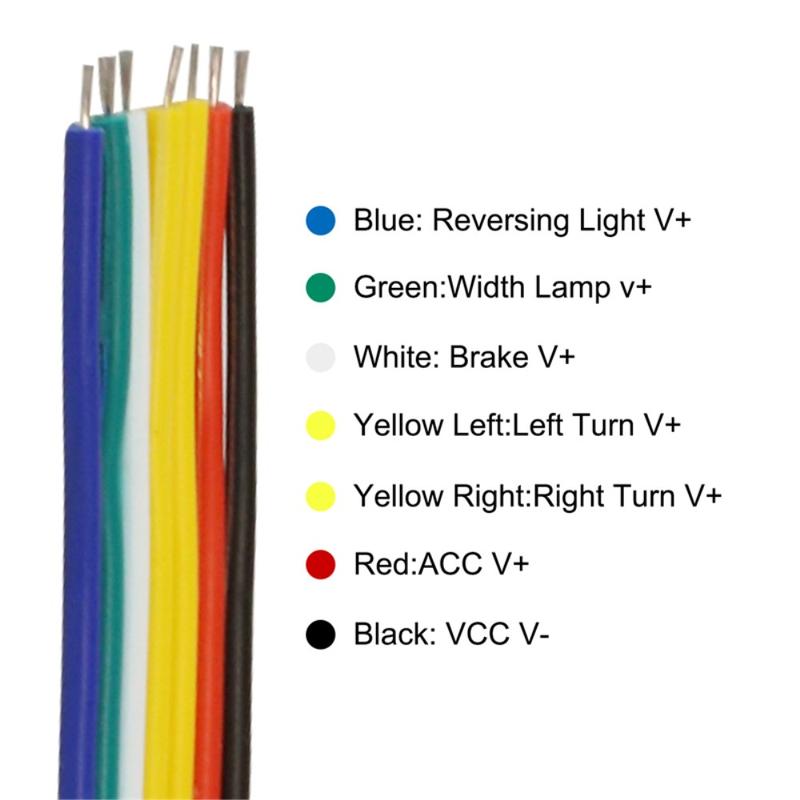 - Green wire (running light): ice blue light when connected to ACC / small light line (12V)