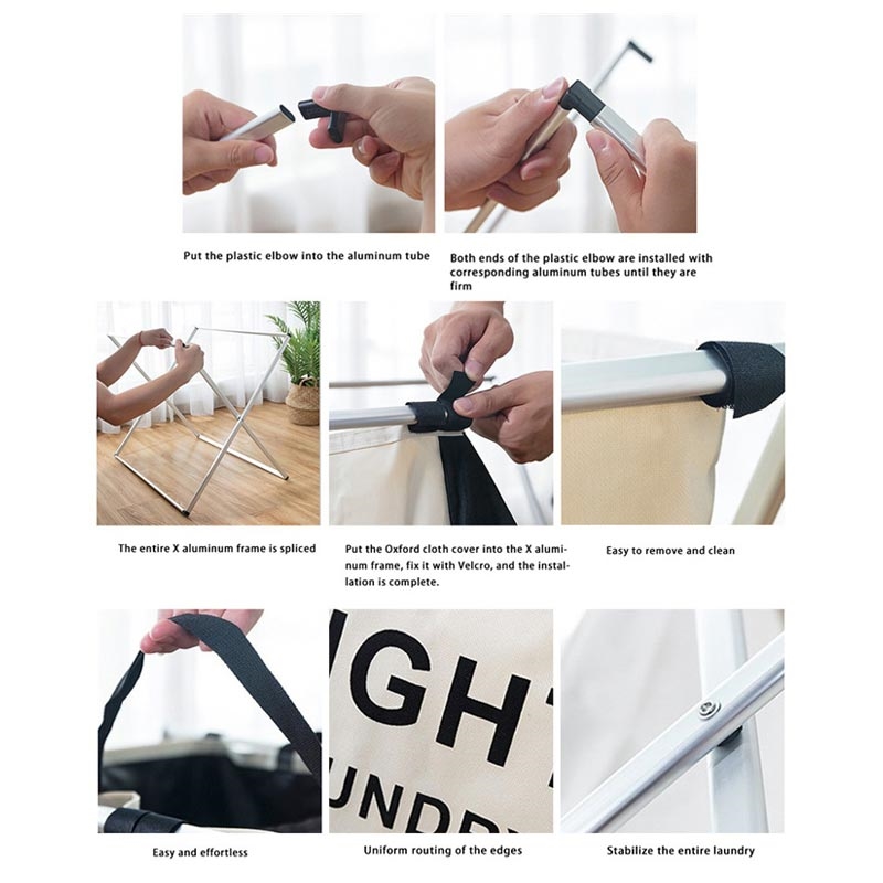 - Included: Laundry hamper + aluminum tube set