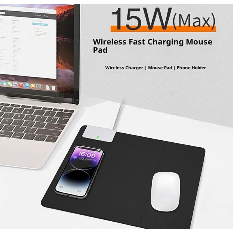 – Wireless mouse pad with integrated 15W fast charging