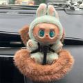 • Furry Car-Vent Safety Seat for Labubu Doll 15-17cm - Pink Clip-On Holder with Seat-Belt Strap, Interior Décor