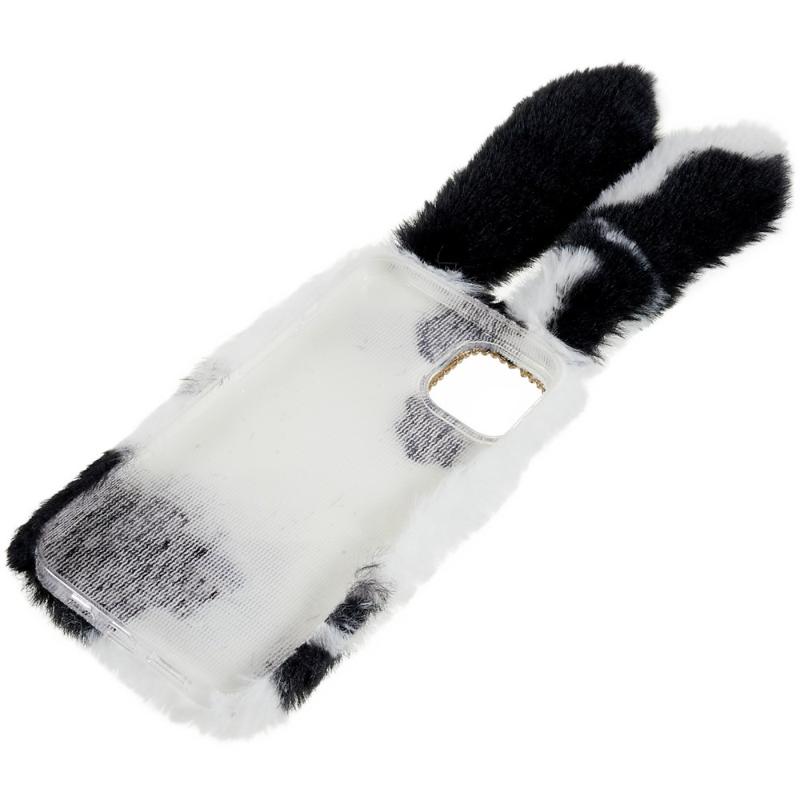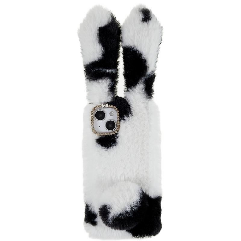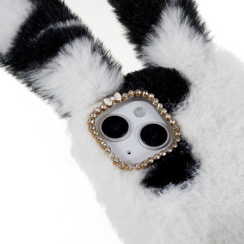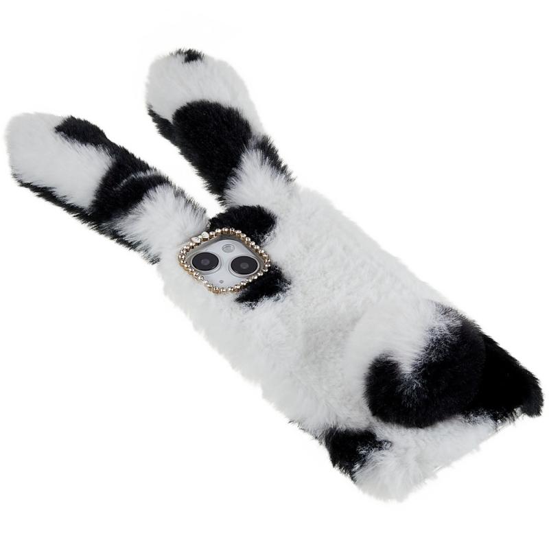 • For iPhone 14 Plus Soft Handmade Fluffy Furry Bunny TPU Shell Cute Rabbit Protective Case