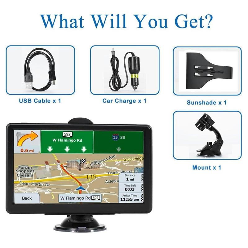 - Full-band FM Transmitter: Output audio from this navigator to your car stereo, FM transmitter (76.0MHz -108MHz) transmits GPS sound to Car, not FM Radio
